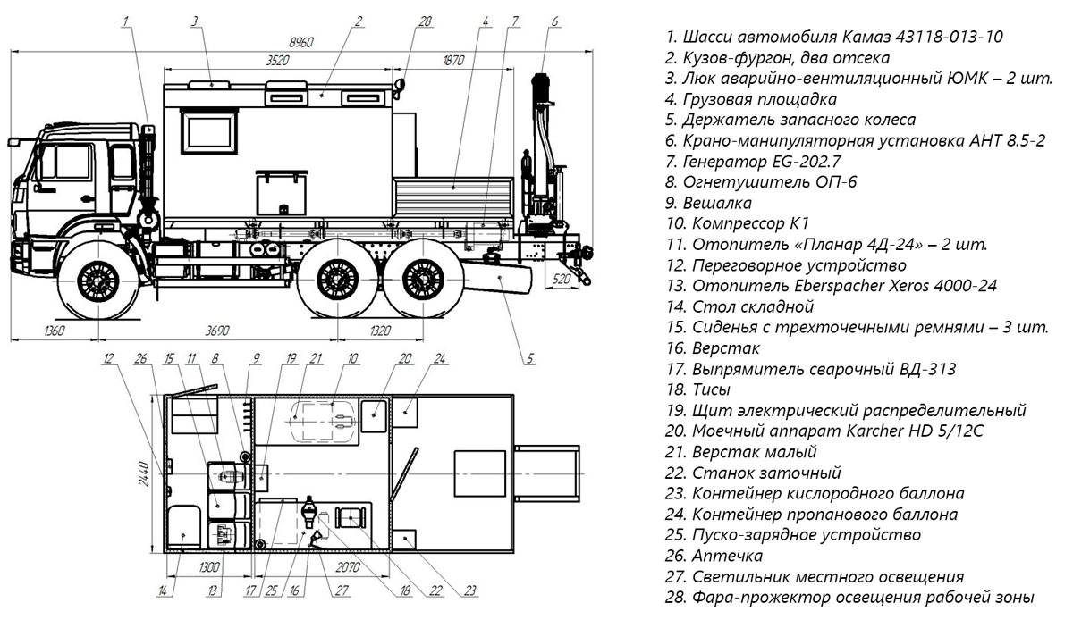 Автомастерская ПАРМ с КМУ КАМАЗ 43118